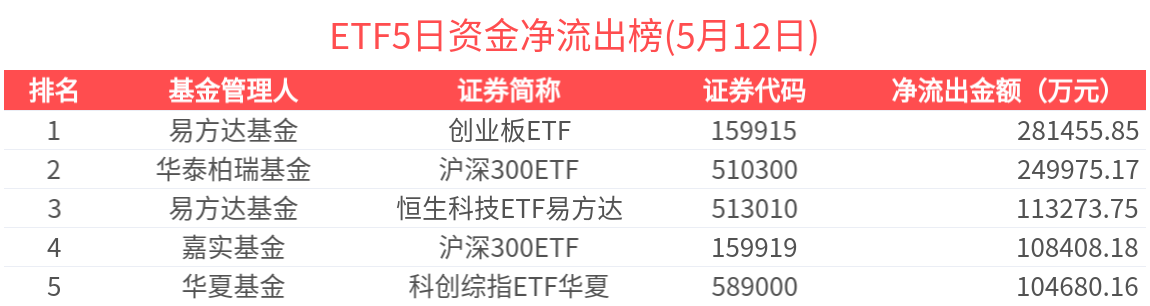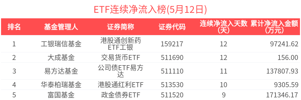 ETF资金榜(2025年5月12日) | 港股通红利ETF(513530)资金加速流入,科创板块备受市场关注